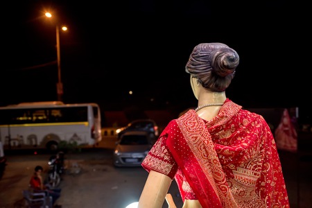 Back view mannequin wearing red sari