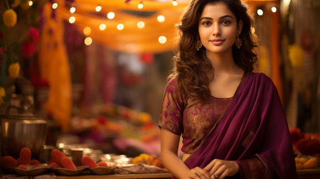 Diwali Festival in India. women in fashion collection of traditional Indian attire inspired by the vibrant colors, intricate patterns, and cultural symbolism of Diwali.