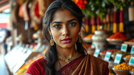 Elegant Indian Woman in Sari at Spice Market