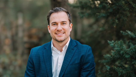 A headshot of a young, confident businessman in a suit, smiling slightly and looking directly at the camera.