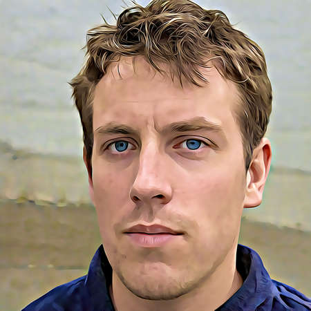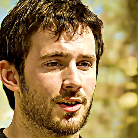 Cartoon-style portrait of person's face.