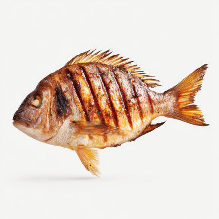 Mouthwatering grilled fish with crispy skin and perfect char marks, ideal for showcasing culinary skills in seafood cooking and healthy dining options.