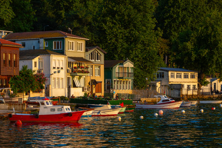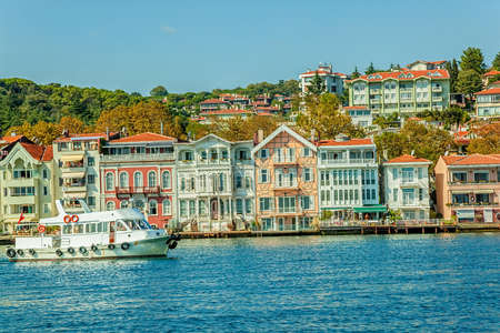 Beautiful and colorful old buildings in the Arnavutkoy region on the embankment of Bosphorus