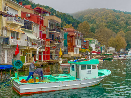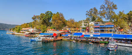 ISTANBUL, TURKEY - SEPTEMBER 29, 2013: View of the Anadolu Kavagi small fishing village with seafood restaurants, last stop on the Asian side of the Bosphorus Strait.