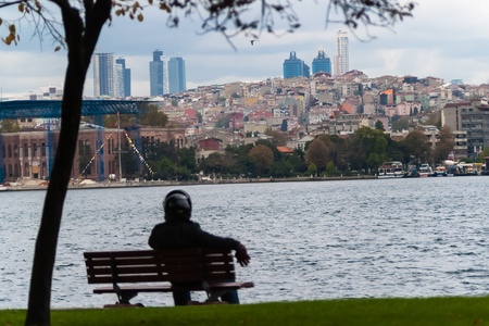 sutluce,istanbul,turkey- august 5,2021.The view of the Golden Horn with its green and natural beauties from the Sutluce district and park on the shore of the Golden Horn in istanbul,