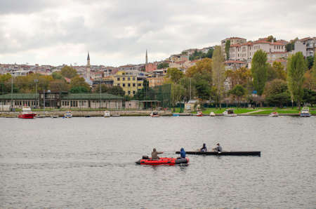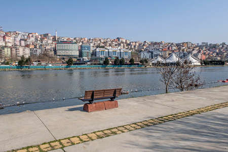 Halic,istanbul,Turkey.March 25,2022.Views from the Golden Horn shore with its green parks, historical and modern buildings.