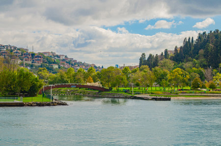 View of a neighborhood called Emirgan by Bosphorus on European side of Istanbul. It is a sunny summer day. Beautiful travel scene.