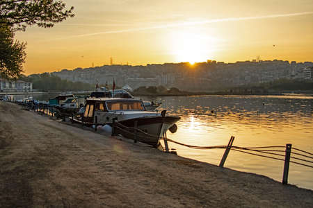 Eyup Sultan, istanbul, Turkey-April 27,2021 The city view from the early hours of the morning in Eyup Sultan district on the Golden Horn coast with its historical and natural beauty.