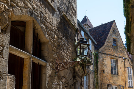 Detail of medieval architecture in historical town of Sarlat, France.