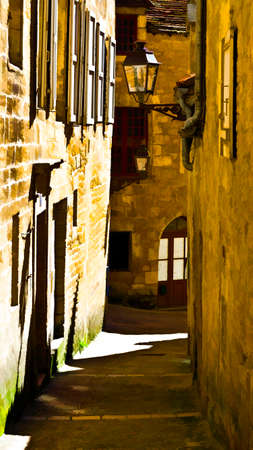 Narrow Street in French City of Sarlat, Stylized Photo