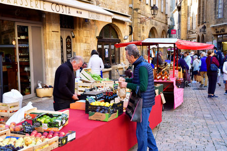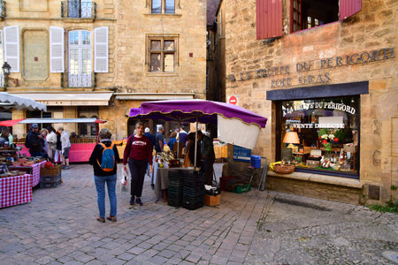 Sarlat la Caneda; France - October 7 2023: the picturesque Saturday market