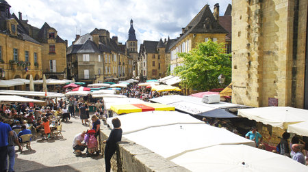 Discover the enchanting streets of Sarlat-la-Canéda, where medieval stone buildings frame bustling market stalls and picturesque scenery invites exploration.