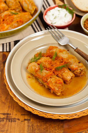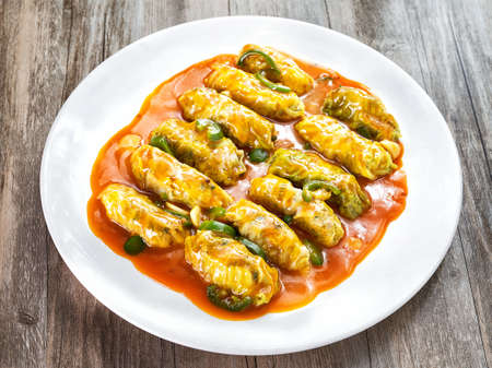 Stuffed Cabbage with tomato sauce. Selective focus.