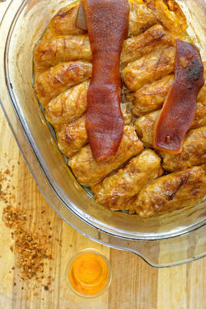 Homemade Sarma, tuffed cabbage rolls. Traditional balkan food.