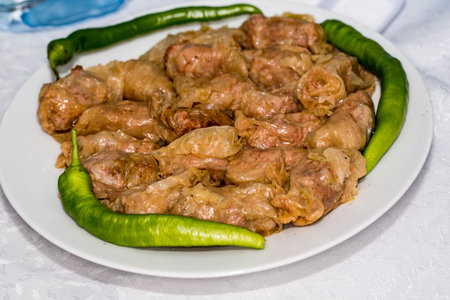 Traditional Turkish and Greek cuisine. Stuffed cabbage with meat and vegetables