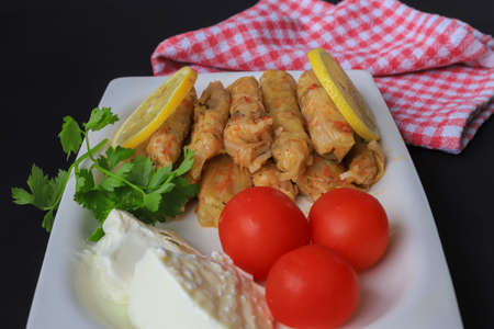 Cabbage Sarma, Turkish traditional food,a boiled cabbage leaf that is formed into a roll with a stuffing of rice