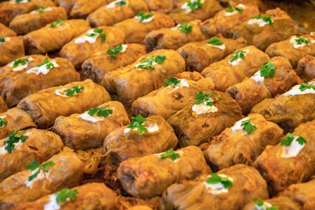 Cabbage Sarma, Turkish traditional food, a boiled cabbage leaf that is formed into a roll with a stuffing of rice