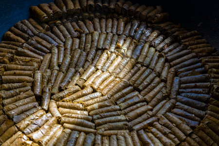 Yaprak wrap, Turkish traditional food, stuffed vine leaves with rice