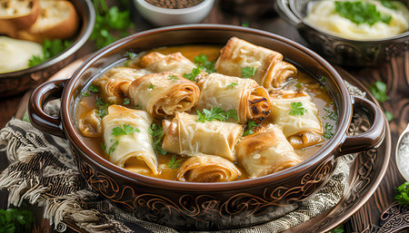 Traditional stuffed cabbage with minced meat and rice, served in a tomato sauce