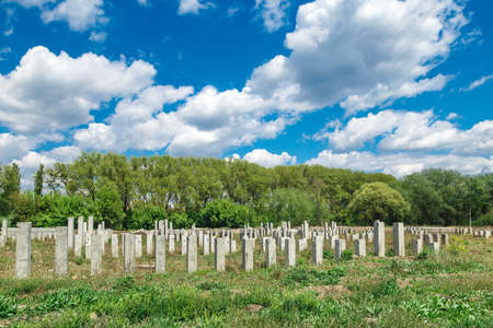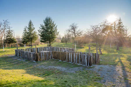 Pichora Marcomanni burial ground south of Dobrichov in the Kolin region Czech republic. Archaeological excavations With small lookout tower with wiew to small city Dobrichov. Educational trail.