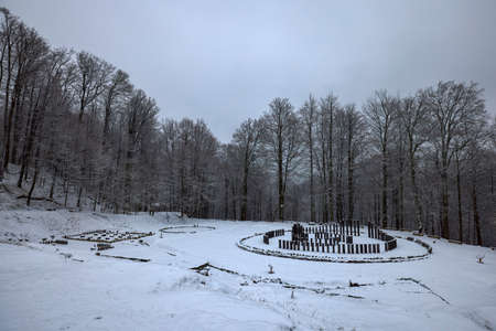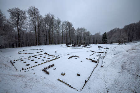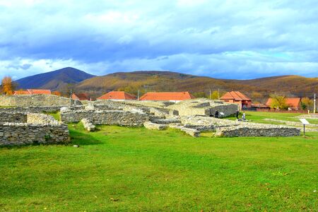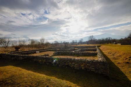 Hunedoara, Romania, January 08-2022. The ruins of the fortress Ulpia Traiana Sarmizegetusa, the Roman fortress of the years. 108-110.
