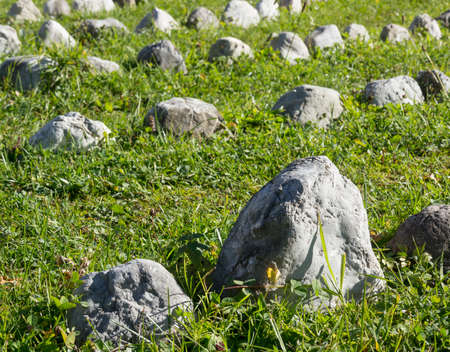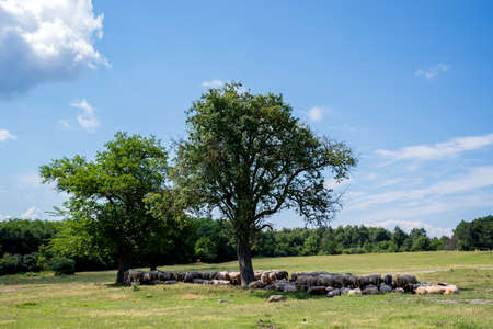 Ancient roman Rajcica wells located in the countryside of Croatia, 40 km away from Split. Round stone formations hidden in the forest overgrown with beautiful green grass. Pasture for local cows