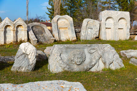 Architectural elements excavated in ancient city of Aizanoi, Turkey