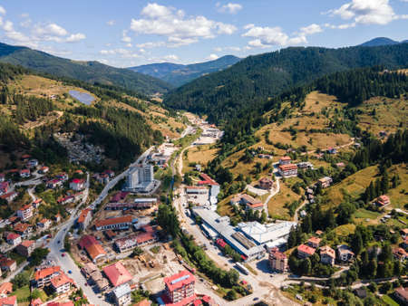 Aerial view of the famous Bulgarian ski resort Chepelare, Smolyan Region, Bulgaria