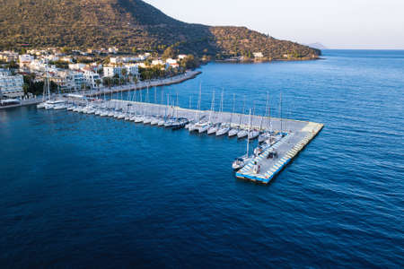 Aerial view of sailing yaht marina in Methana, Aegean sea - Greece.
