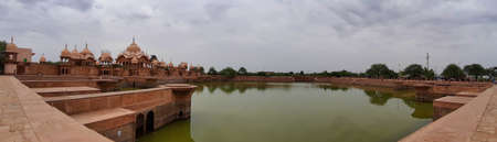 Gadisar lake on sunset. Man-made water reservoir with temples in Jaisalmer. Rajasthan. India