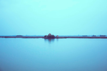 Reflection in the water of the lagoon in the evening.