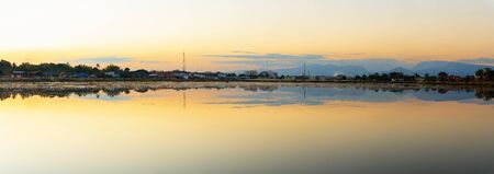 Panoramic beautiful lake of Nong Bueng Kan Public Park with City at Bueng Kan province, Thailand.