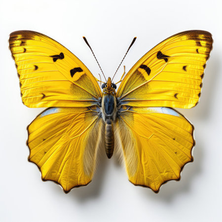 Top-down view of a Clouded Yellow Butterfly (Colias croceus).