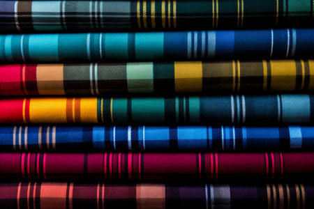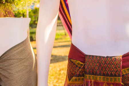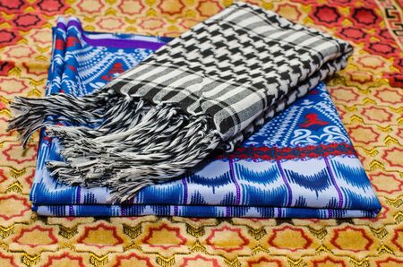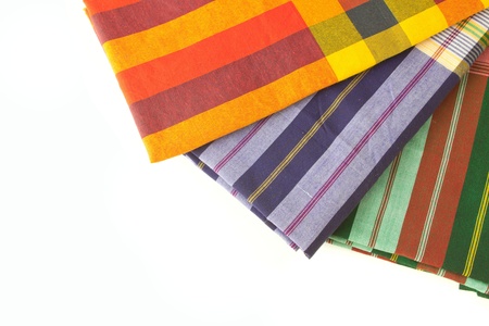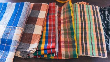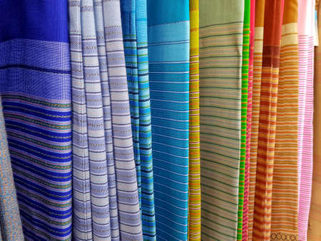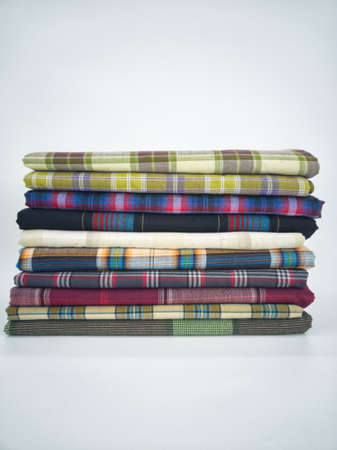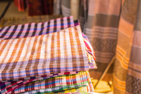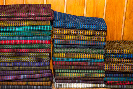 Colorful handmade loincloth. Pile of Loincloth fabric Thailand silk. hand-woven , Plaid pattern, Loincloth pattern, Tartan pattern, Check pattern from local and cultural product in Thailand.