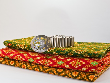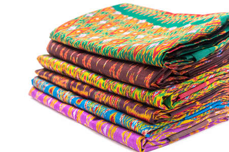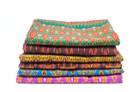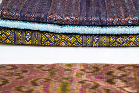 Thai silk fabric pattern on white background. Traditional thai fabric.