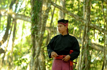 Drawing/Painting of Malaysian Famous Martial Art called Silat Performing Action of training in a jungle