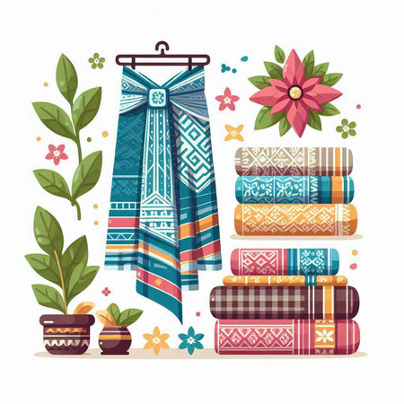 Vector illustration of a set of colorful towels and flowers. Vector illustration.