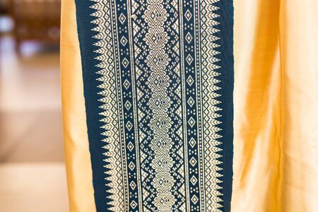 Hand woven cloth fabric local folk wisdom dye natural color of traditional clothes kind of fashion isan or east northern in OTOP midyear event fair at Impact Muang Thong Thani in Nonthaburi, Thailand