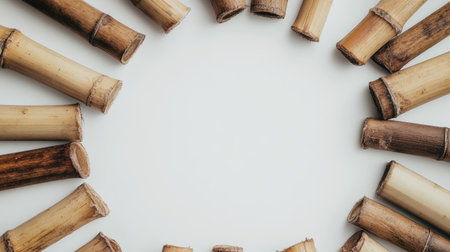 A beautiful arrangement of natural bamboo sticks forming a circular frame on a white background, perfect for showcasing creativity and minimalistic design.