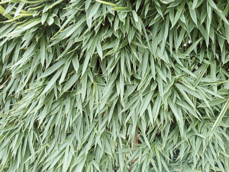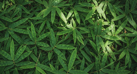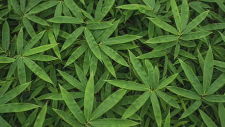 Green bamboo leaves background. Top view of fresh bamboo leaves texture.