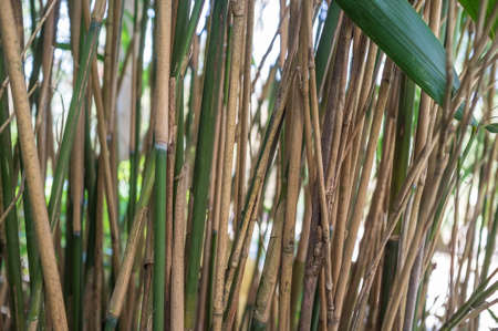 trunk of bamboo form of a hollow reed. Detail of a bamboo tree Japanese Bamboo Forest in the sunny day is a type of grassy plant. Little bamboo trunks plant has prominent branches and reed leaves