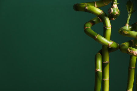 Dark green aesthetic bamboo background. Natural texture. Presentation template. Generative AI.