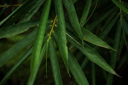 Green bamboo leaves background, close up of green bamboo leaves background.