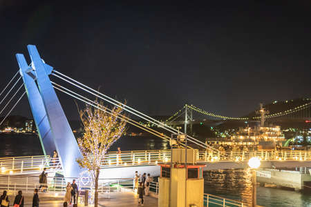 View of Shimonoseki Kanmon Straits and Karato market park in Yamaguchi, Japan