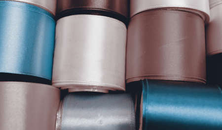 Colorful silk ribbons as background, closeup. Textile industry