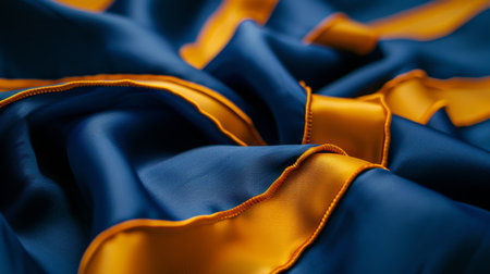 Blue and Gold Fabric Texture Luxurious Drapery with Satin Stripes, Elegant Background for Design