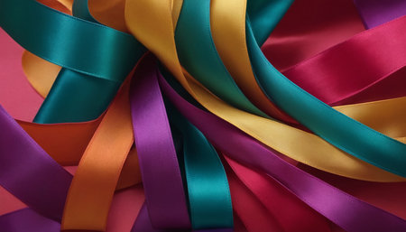 Colorful ribbons in vibrant shades intertwine to create a stunning display, enhancing creative projects and festive themes with joyful energy and positivity for any celebration