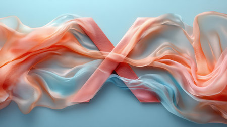 Delicate ribbons in pastel colors gracefully intertwine on a light background, evoking serenity.