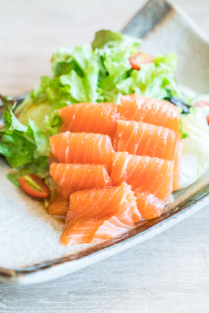 Fresh salmon sashimi serve on plate. Japanese food style.