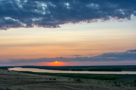 Landscape with a beautiful sunset on a small river.
